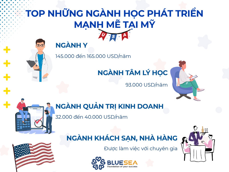 Du học Mỹ nên chọn ngành gì là một trong những câu hỏi Bluesea nhận được nhiều nhất thời gian vừa qua. Nhiều sinh viên muốn tiếp cận nền giáo dục của Mỹ nhưng chưa có định hướng cụ thể. Bài viết dưới đây, chúng tôi sẽ chia sẻ tới các bạn một số ngành học hot có tiềm năng phát triển mạnh mẽ trong tương lai.