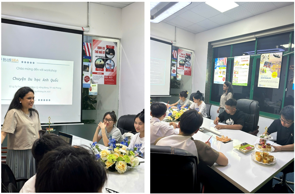 Vào ngày 18/04/2025, tại văn phòng BLUESEA Hải Phòng đã diễn ra chương trình hội thảo “Chuyện Du học Anh Quốc” với sự tham gia của cô Ridhima Somaiya, IELTS Master Trainer từ British Council, cô Bùi Hiền – đại diện trường University of the West of Scotland – London (UWS London) và các bạn học sinh, sinh viên trên địa bàn thành phố Hải Phòng.