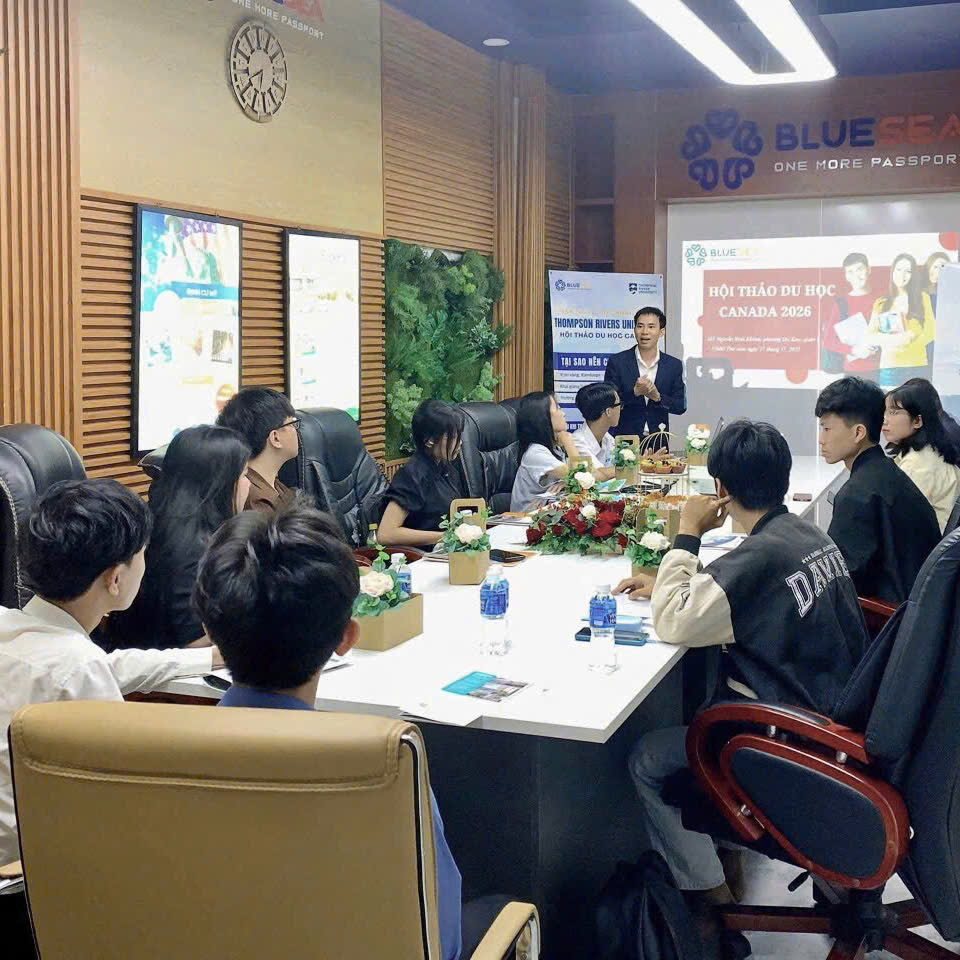 Ngày 27/11/2025, BLUESEA đã tổ chức thành công Hội thảo Du học Canada – Thompson Rivers University (TRU), thu hút đông đảo học sinh, sinh viên và phụ huynh quan tâm đến hành trình du học – định cư tại Canada.